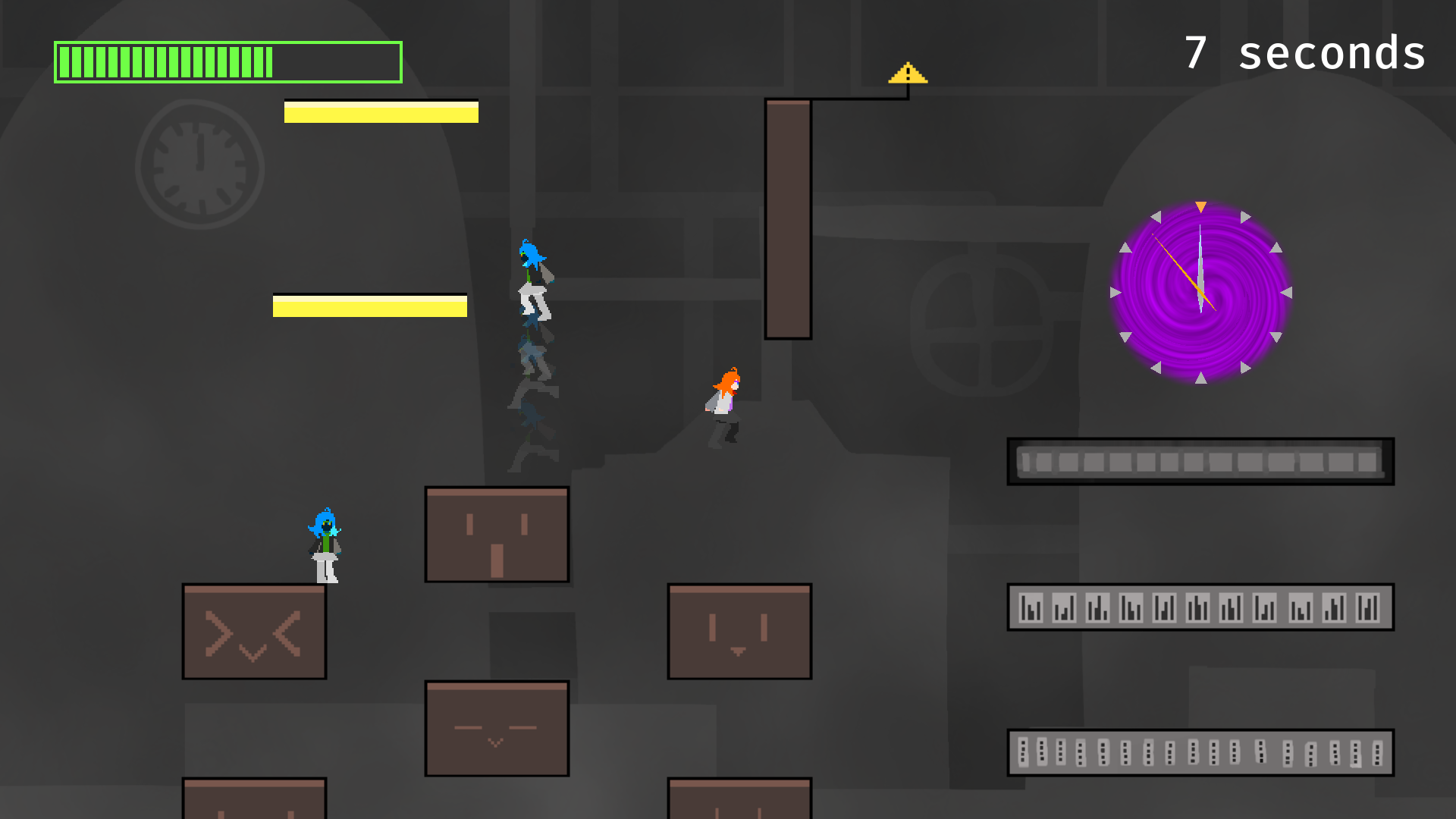 You're trapped in an endless time loop caused by your malfunctioning time vortex. Each loop starts a second earlier, bringing you closer and closer to the moment the time vortex went rogue. But to get there, you have to dodge your past selves and deadly time anomalies each time! Can you make it back to 11:59, and then survive 60 seconds to midnight to save the world?